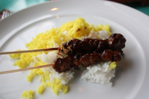 We began with the Sate Kambing from central Java. This was grilled lamb with peanut-soy sauce. Call me boring, but sate was my favorite dish while there. I just love the flavor of the meat, the sweet glaze combined with the salty peanut sauce and the simplicity of the whole thing. It was so delicious straight from the source while in Indonesia.